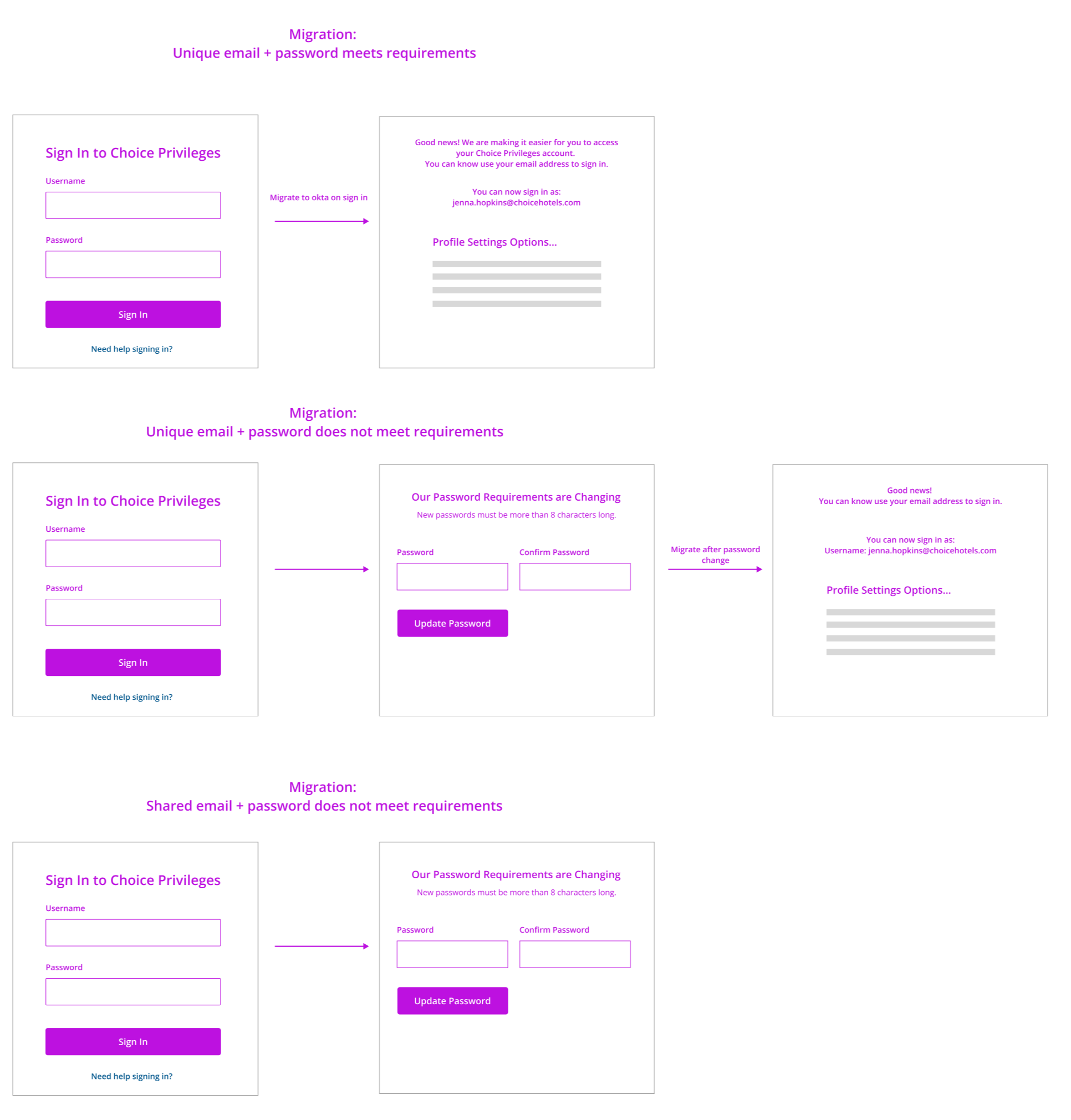 Guest accounts needed to be moved from a legacy authentication system to a new, more secure system. Guest needed to take action to complete their account migration. We wanted to make it as simple and seamless for the customer as possible.